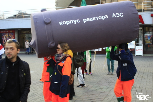 Найбольш крэатыўна да акцыі падышлі «зялёныя». Яны прыцягнулі з сабою макет рэактара АЭС. Гэты «рэактар» людзі, апранутыя ў робы працаўнікоў, перыядычна «ранялі» і шкрабалі — што намякала на якасць працаў па збудаванні АЭС у Астраўцы і вядомы інцыдэнт з рэактарным блокам, які з-за таго, што яго «ўпалі», давялося замяняць.